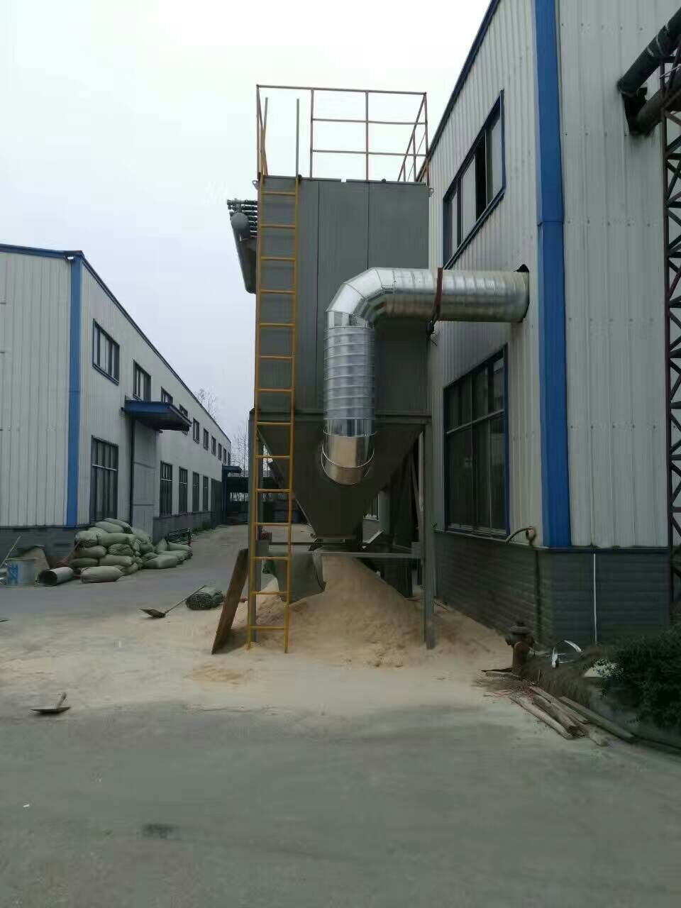 含塵氣體進(jìn)入除塵器灰斗后,由于氣流斷面突然擴(kuò)大及氣流分布板作用,氣流中一部分粗大顆粒在動(dòng)和慣性力作用下沉降在灰斗;粒度細(xì)、密度小的塵粒進(jìn)入濾塵室后,通過布朗擴(kuò)散和篩濾等組合效應(yīng),使粉塵沉積在濾料表面上,凈化后的氣體進(jìn)入凈氣室由排氣管經(jīng)風(fēng)機(jī)排出。