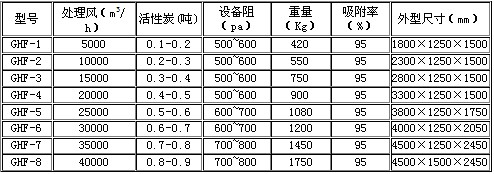 四、GHF系列|活性炭吸附過(guò)濾器設(shè)備型號(hào)及參數(shù):